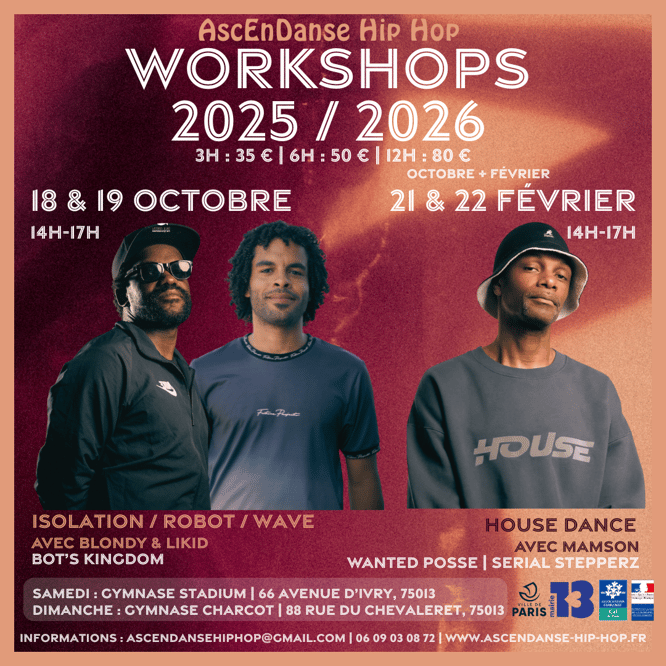 Depuis la création de l'association, AscEnDanse Hip Hop, actif dans le champ de la transmission, décide d’aller plus loin dans ce domaine en proposant des Workshops à l’intention des danseurs